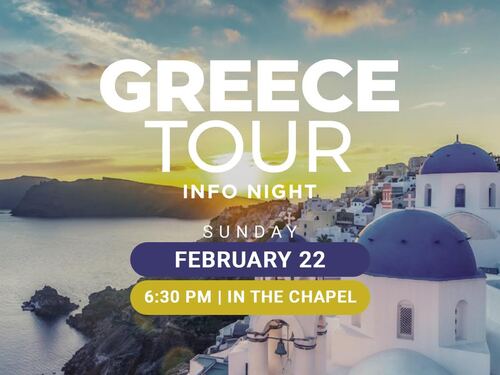 - Sun Feb 22 at 6:30 PM | Greece Tour Info Night