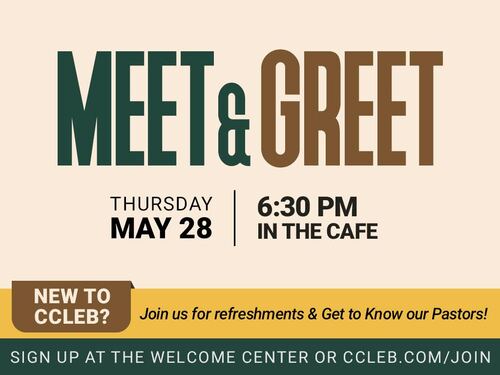 - Thurs May 28 at 6:30 PM | Meet & Greet
